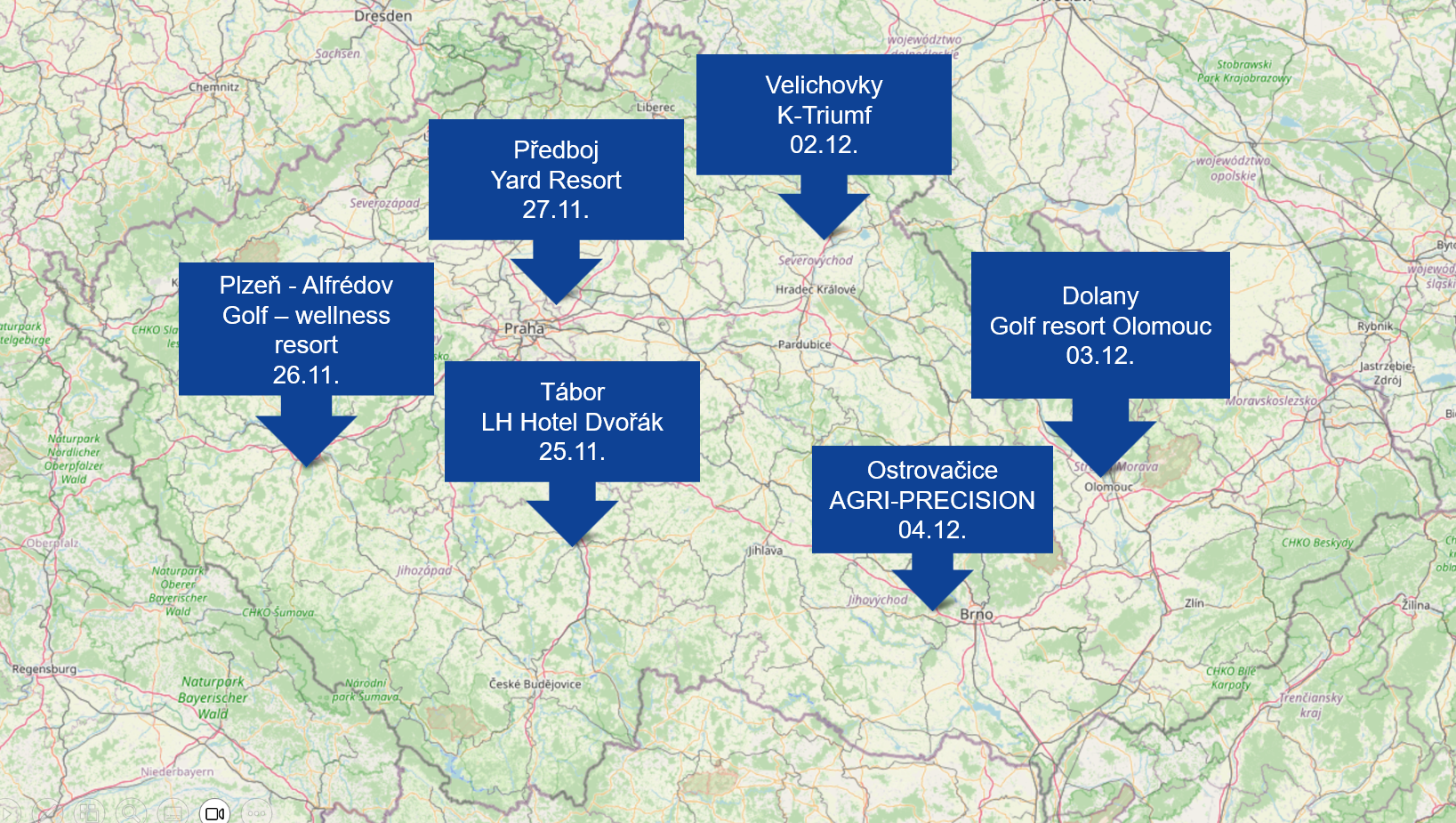 Již tradičně pro Vás chystáme interaktivní semináře Dny precizního zemědělství, které můžete navštívit na různých místech v České republice. Díky Vašemu velkému zájmu, přidáváme 1 akci v Čechách.